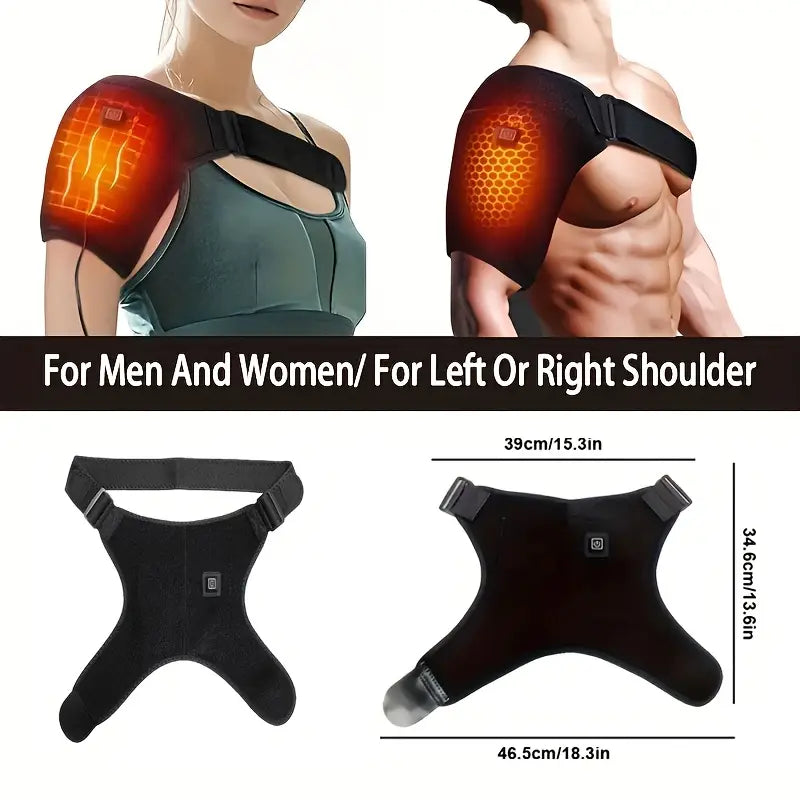 (apta para hombro izquierdo o derecho) ✅Cable de conexión USB☑️Control de temperatura con 3 niveles (bajo, medio, alto) ✅Función de apagado automático a los 45 minutos☑️Manual de usuario